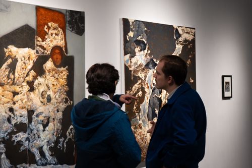 Like a medieval bestiary, which were once used to catalogue both real and imaginary creatures as bearers of symbolic meaning, part of this exhibition can also be perceived as an abstract bestiary cataloging wind collectors and guardians of forbidden orchards. The artist emphasizes the role of figurality within his abstraction: the absence of concrete objects, coexisting with a persistent sense of imagery, subsides barriers between viewers of different cultures and life experiences. Such purposeful openness provokes interpretation, inviting viewers to decipher their own visions, making them the constructors of a personal myth within each painting. Just as humanity once found beasts and gods in the stars and clouds. The result is a communal imaginative space that reminds us that imagination and empathy are inseparable and remain among humanity’s most integral traits.